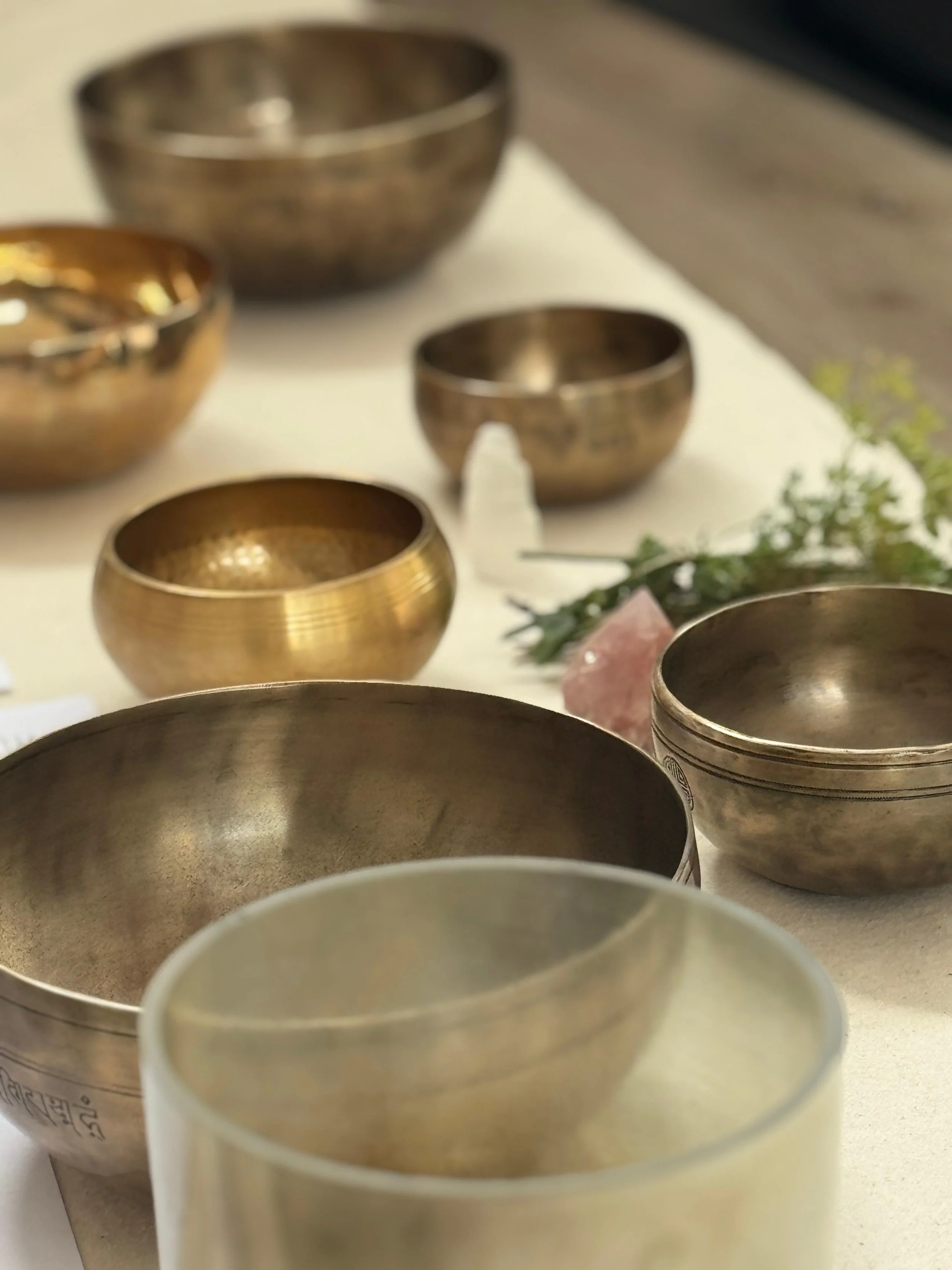 Immerse yourself in the soothing sounds of Alchemy Crystal Bowls and Full Moon Tibetan Singing Bowls as you let go of stress and tension.